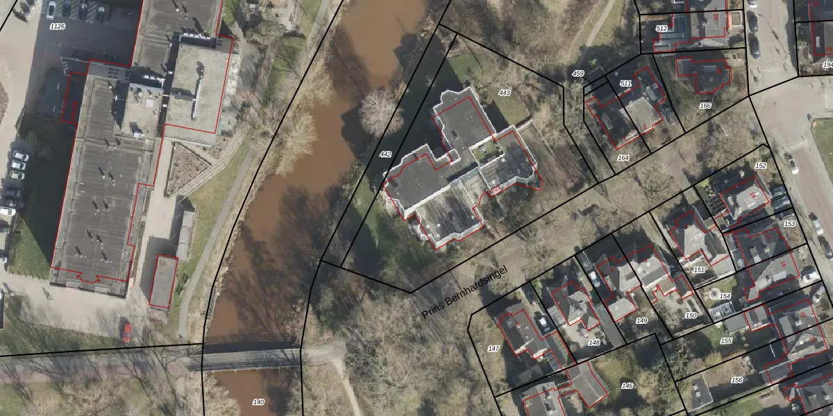 Het perceel waarop Prins Bernhardsingel 10 staat heeft een oppervlakte van 2032 m². Dit is een zeer groot perceel. De perceeloppervlakte wordt geregistreerd door het Kadaster. Gedetailleerde informatie over de maten van dit perceel kunt u vinden in het rapport Kadastrale kaart met maatvoering van Prins Bernhardsingel 10.