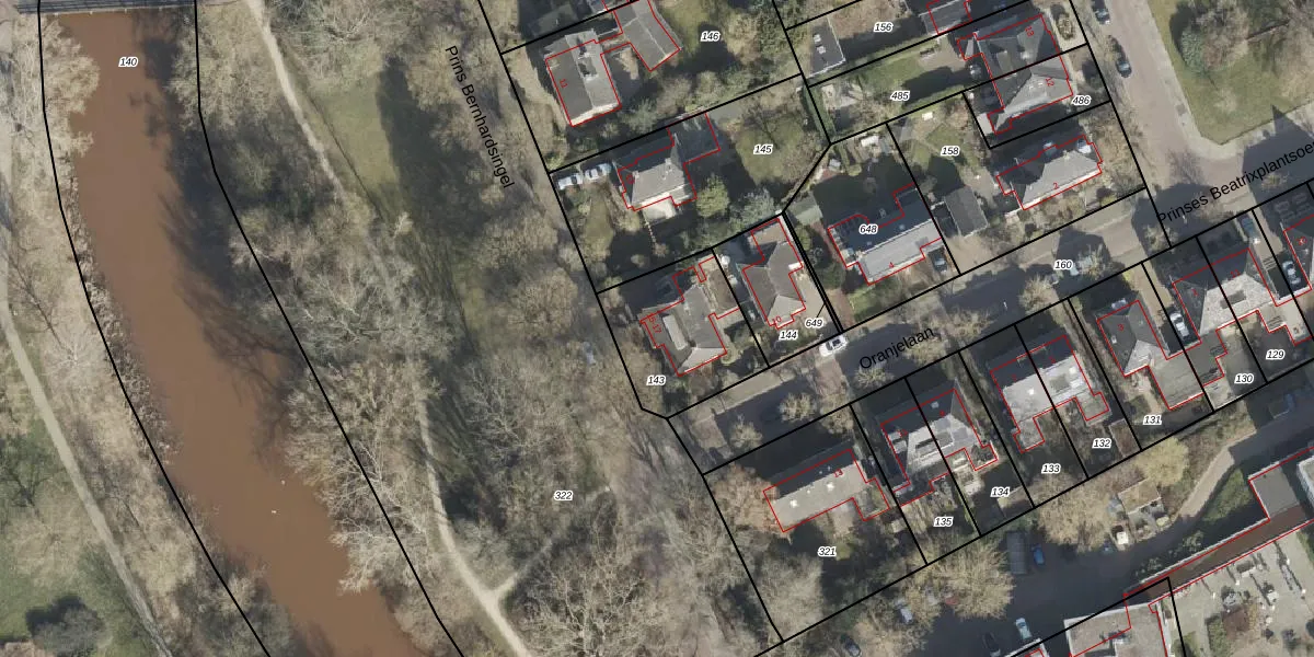 Het perceel waarop Prins Bernhardsingel 15 staat heeft een oppervlakte van 411 m². Dit is een groot perceel. De perceeloppervlakte wordt geregistreerd door het Kadaster. Gedetailleerde informatie over de maten van dit perceel kunt u vinden in het rapport Kadastrale kaart met maatvoering van Prins Bernhardsingel 15.