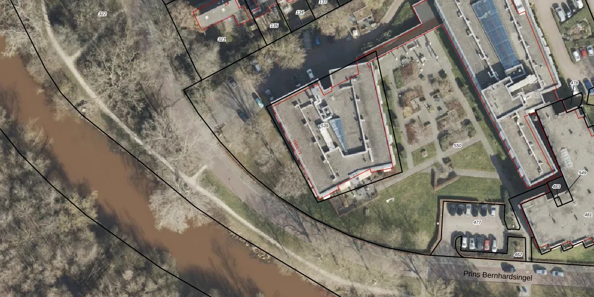Het perceel waarop Prins Bernhardsingel 19-10 staat heeft een oppervlakte van 1386 m². Dit is een zeer groot perceel. De perceeloppervlakte wordt geregistreerd door het Kadaster. Gedetailleerde informatie over de maten van dit perceel kunt u vinden in het rapport Kadastrale kaart met maatvoering van Prins Bernhardsingel 19-10.