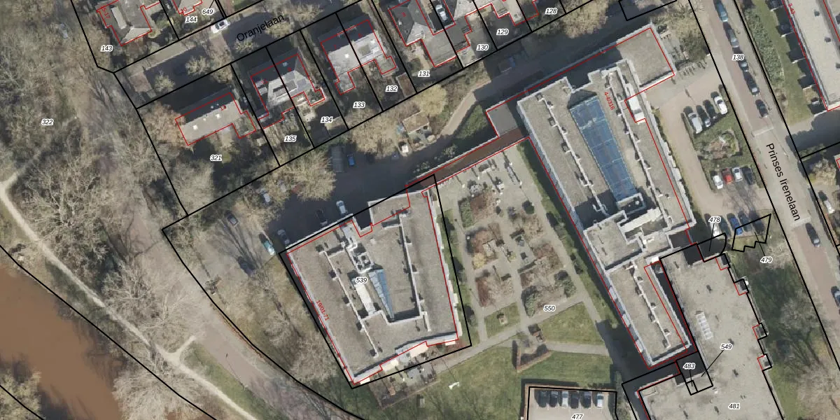 Het perceel waarop Prins Bernhardsingel 21-02 staat heeft een oppervlakte van 1386 m². Dit is een zeer groot perceel. De perceeloppervlakte wordt geregistreerd door het Kadaster. Gedetailleerde informatie over de maten van dit perceel kunt u vinden in het rapport Kadastrale kaart met maatvoering van Prins Bernhardsingel 21-02.
