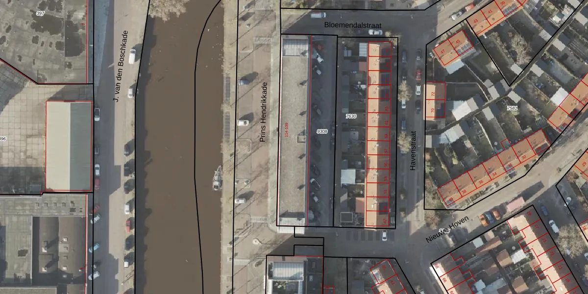 Het perceel waarop Prins Hendrikkade 124 staat heeft een oppervlakte van 1309 m². Dit is een zeer groot perceel. De perceeloppervlakte wordt geregistreerd door het Kadaster. Gedetailleerde informatie over de maten van dit perceel kunt u vinden in het rapport Kadastrale kaart met maatvoering van Prins Hendrikkade 124.