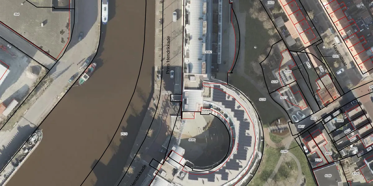 Het perceel waarop Prins Hendrikkade 29 staat heeft een oppervlakte van 4695 m². Dit is een zeer groot perceel. De perceeloppervlakte wordt geregistreerd door het Kadaster. Gedetailleerde informatie over de maten van dit perceel kunt u vinden in het rapport Kadastrale kaart met maatvoering van Prins Hendrikkade 29.