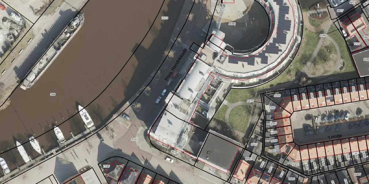 Het perceel waarop Prins Hendrikkade 45 staat heeft een oppervlakte van 4695 m². Dit is een zeer groot perceel. De perceeloppervlakte wordt geregistreerd door het Kadaster. Gedetailleerde informatie over de maten van dit perceel kunt u vinden in het rapport Kadastrale kaart met maatvoering van Prins Hendrikkade 45.