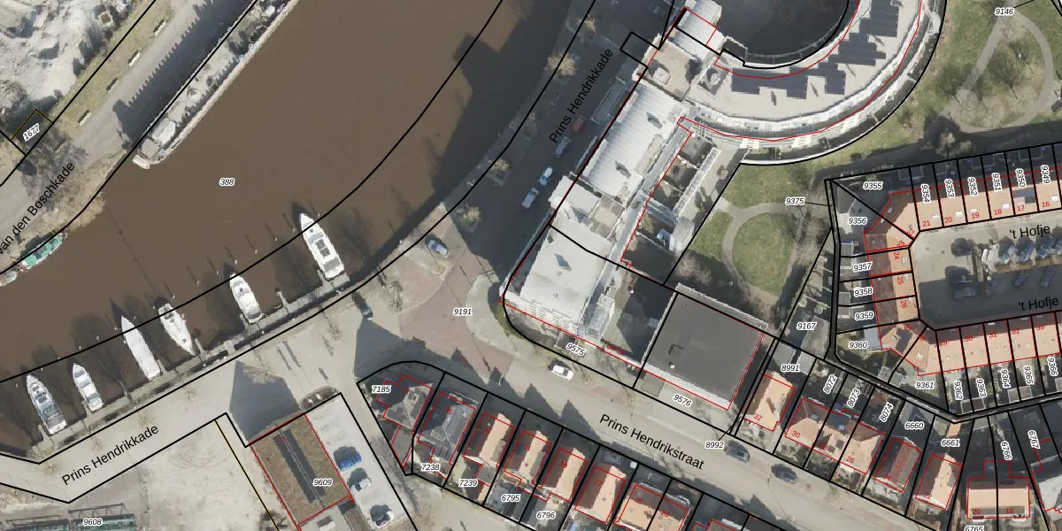 Het perceel waarop Prins Hendrikkade 8 staat heeft een oppervlakte van 575 m². Dit is een groot perceel. De perceeloppervlakte wordt geregistreerd door het Kadaster. Gedetailleerde informatie over de maten van dit perceel kunt u vinden in het rapport Kadastrale kaart met maatvoering van Prins Hendrikkade 8.