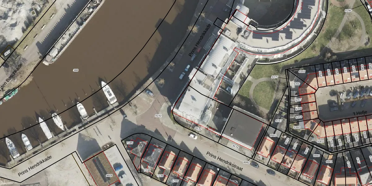 Het perceel waarop Prins Hendrikkade 9 staat heeft een oppervlakte van 575 m². Dit is een groot perceel. De perceeloppervlakte wordt geregistreerd door het Kadaster. Gedetailleerde informatie over de maten van dit perceel kunt u vinden in het rapport Kadastrale kaart met maatvoering van Prins Hendrikkade 9.