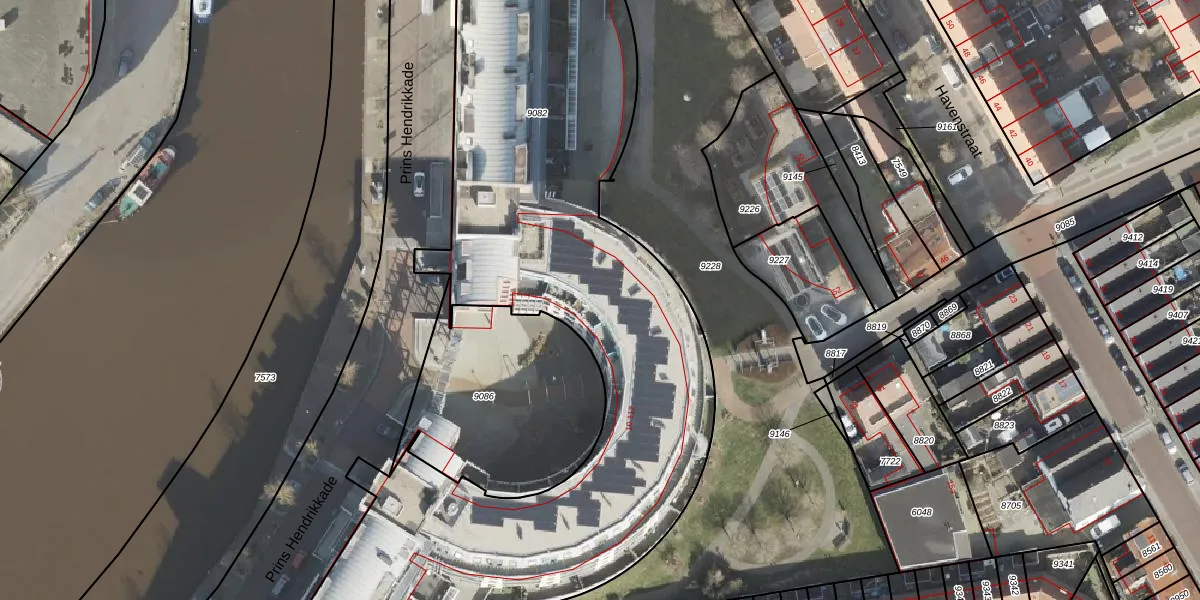 Het perceel waarop Prins Hendrikkade 92 staat heeft een oppervlakte van 4695 m². Dit is een zeer groot perceel. De perceeloppervlakte wordt geregistreerd door het Kadaster. Gedetailleerde informatie over de maten van dit perceel kunt u vinden in het rapport Kadastrale kaart met maatvoering van Prins Hendrikkade 92.