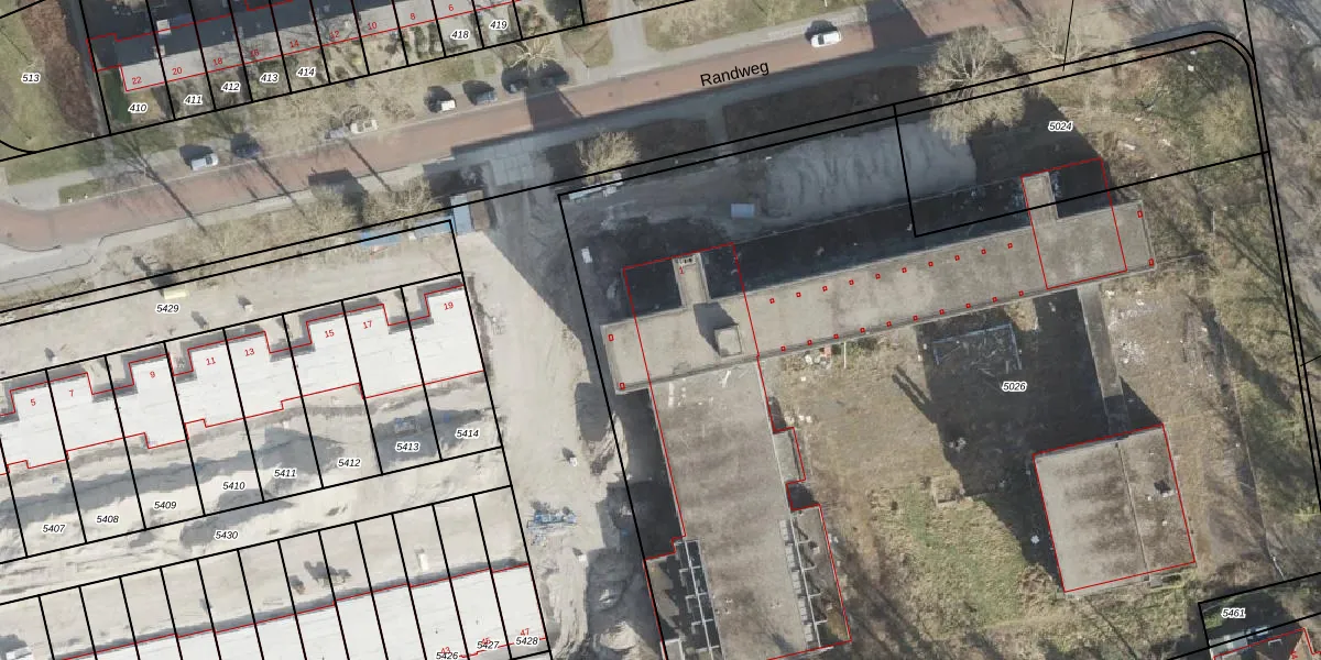 Het perceel waarop Randweg 1-14 staat heeft een oppervlakte van 8230 m². Dit is een zeer groot perceel. De perceeloppervlakte wordt geregistreerd door het Kadaster. Gedetailleerde informatie over de maten van dit perceel kunt u vinden in het rapport Kadastrale kaart met maatvoering van Randweg 1-14.