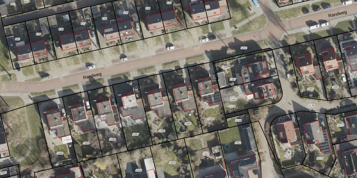 Het perceel waarop Randweg 49 staat heeft een oppervlakte van 550 m². Dit is een groot perceel. De perceeloppervlakte wordt geregistreerd door het Kadaster. Gedetailleerde informatie over de maten van dit perceel kunt u vinden in het rapport Kadastrale kaart met maatvoering van Randweg 49.