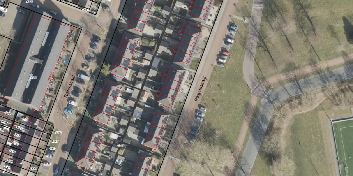 Het perceel waarop Resedastraat 42 staat heeft een oppervlakte van 1,1 ha. Dit is een zeer groot perceel. De perceeloppervlakte wordt geregistreerd door het Kadaster. Gedetailleerde informatie over de maten van dit perceel kunt u vinden in het rapport Kadastrale kaart met maatvoering van Resedastraat 42.