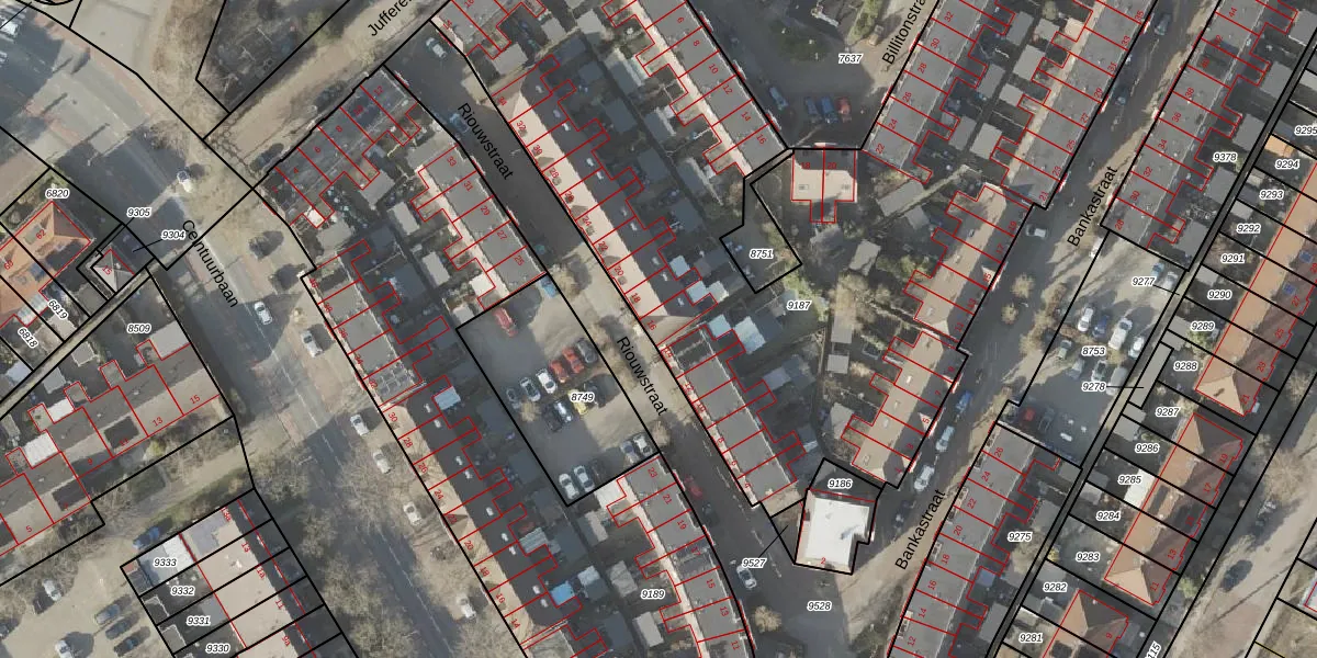 Het perceel waarop Riouwstraat 16 staat heeft een oppervlakte van 5268 m². Dit is een zeer groot perceel. De perceeloppervlakte wordt geregistreerd door het Kadaster. Gedetailleerde informatie over de maten van dit perceel kunt u vinden in het rapport Kadastrale kaart met maatvoering van Riouwstraat 16.