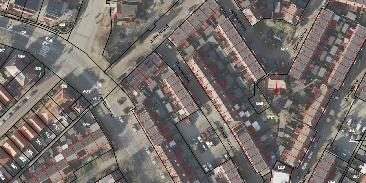 Het perceel waarop Riouwstraat 29 staat heeft een oppervlakte van 3103 m². Dit is een zeer groot perceel. De perceeloppervlakte wordt geregistreerd door het Kadaster. Gedetailleerde informatie over de maten van dit perceel kunt u vinden in het rapport Kadastrale kaart met maatvoering van Riouwstraat 29.