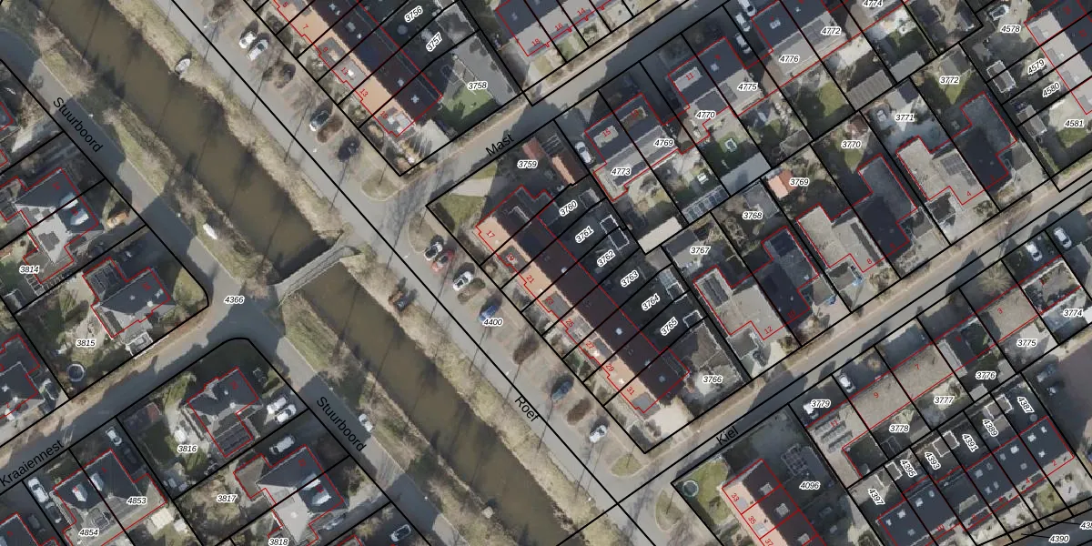Het perceel waarop Roef 21 staat heeft een oppervlakte van 146 m². Dit is een middelgroot perceel. De perceeloppervlakte wordt geregistreerd door het Kadaster. Gedetailleerde informatie over de maten van dit perceel kunt u vinden in het rapport Kadastrale kaart met maatvoering van Roef 21.