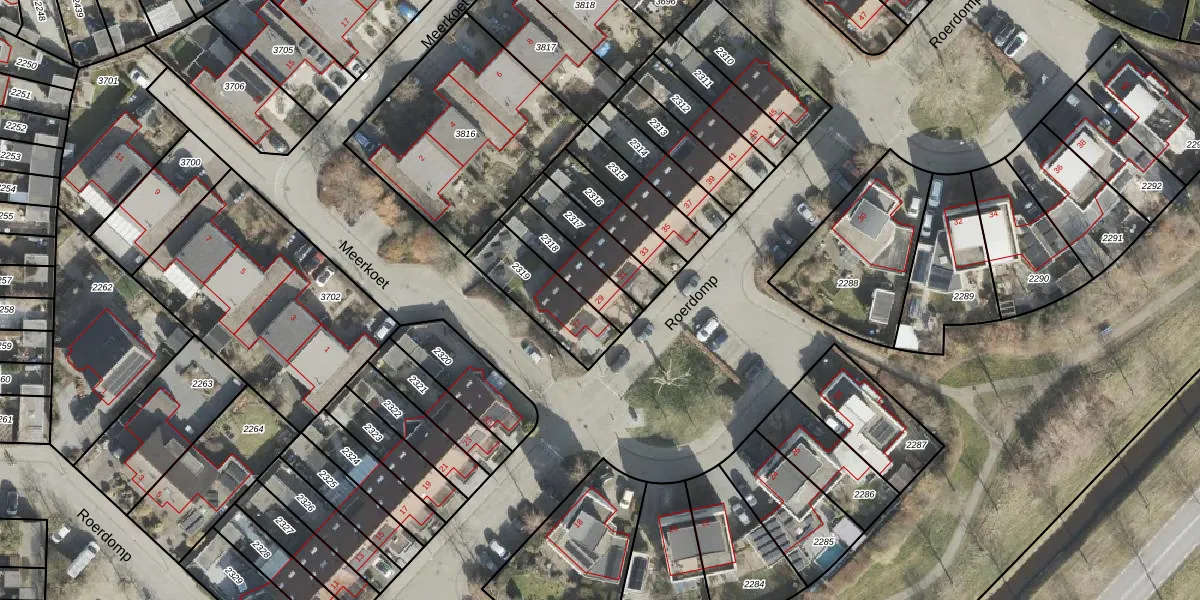 Het perceel waarop Roerdomp 29 staat heeft een oppervlakte van 151 m². Dit is een middelgroot perceel. De perceeloppervlakte wordt geregistreerd door het Kadaster. Gedetailleerde informatie over de maten van dit perceel kunt u vinden in het rapport Kadastrale kaart met maatvoering van Roerdomp 29.