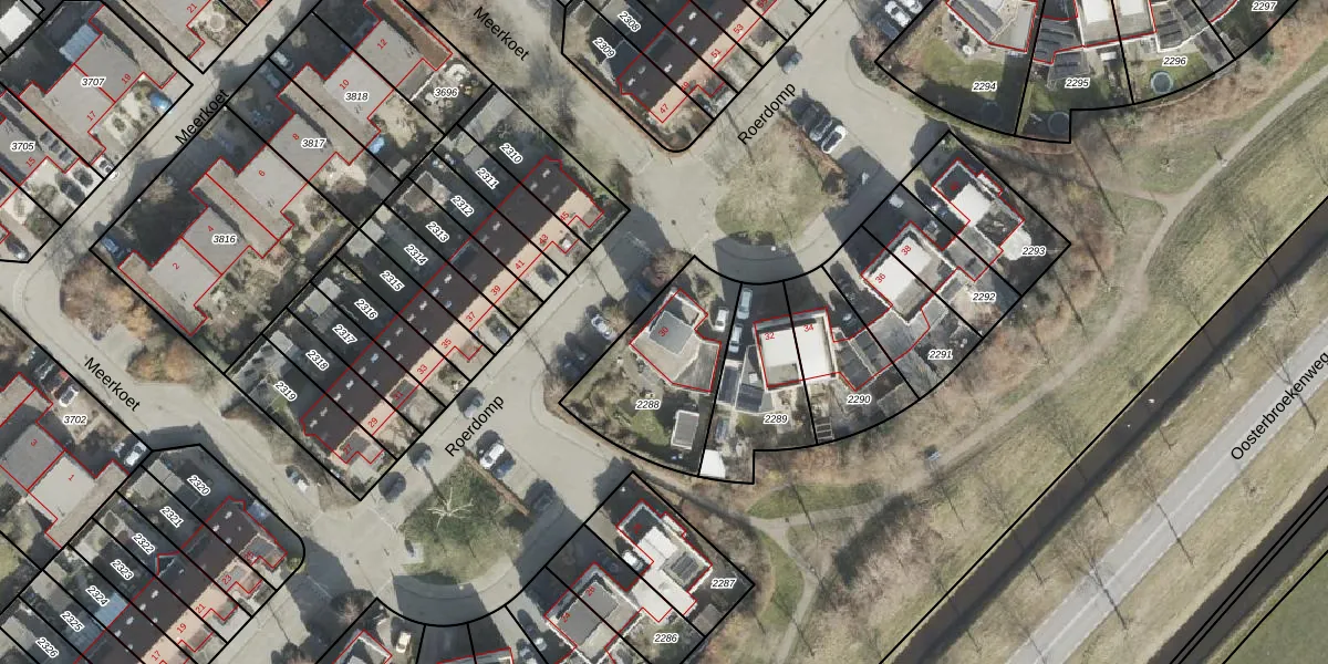 Het perceel waarop Roerdomp 30 staat heeft een oppervlakte van 484 m². Dit is een groot perceel. De perceeloppervlakte wordt geregistreerd door het Kadaster. Gedetailleerde informatie over de maten van dit perceel kunt u vinden in het rapport Kadastrale kaart met maatvoering van Roerdomp 30.