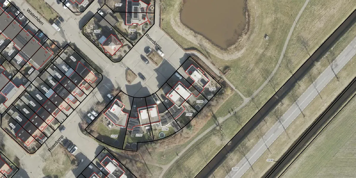 Het perceel waarop Roerdomp 50 staat heeft een oppervlakte van 215 m². Dit is een middelgroot perceel. De perceeloppervlakte wordt geregistreerd door het Kadaster. Gedetailleerde informatie over de maten van dit perceel kunt u vinden in het rapport Kadastrale kaart met maatvoering van Roerdomp 50.