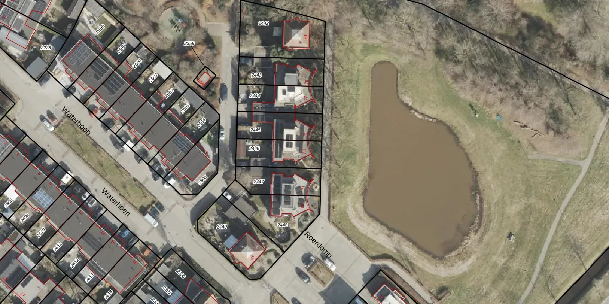 Gebruik de zoekbalk of klik op een perceel voor informatie over de adressen binnen dit perceel.