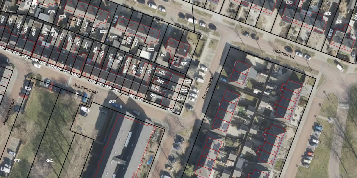 Gebruik de zoekbalk of klik op een perceel voor informatie over de adressen binnen dit perceel.