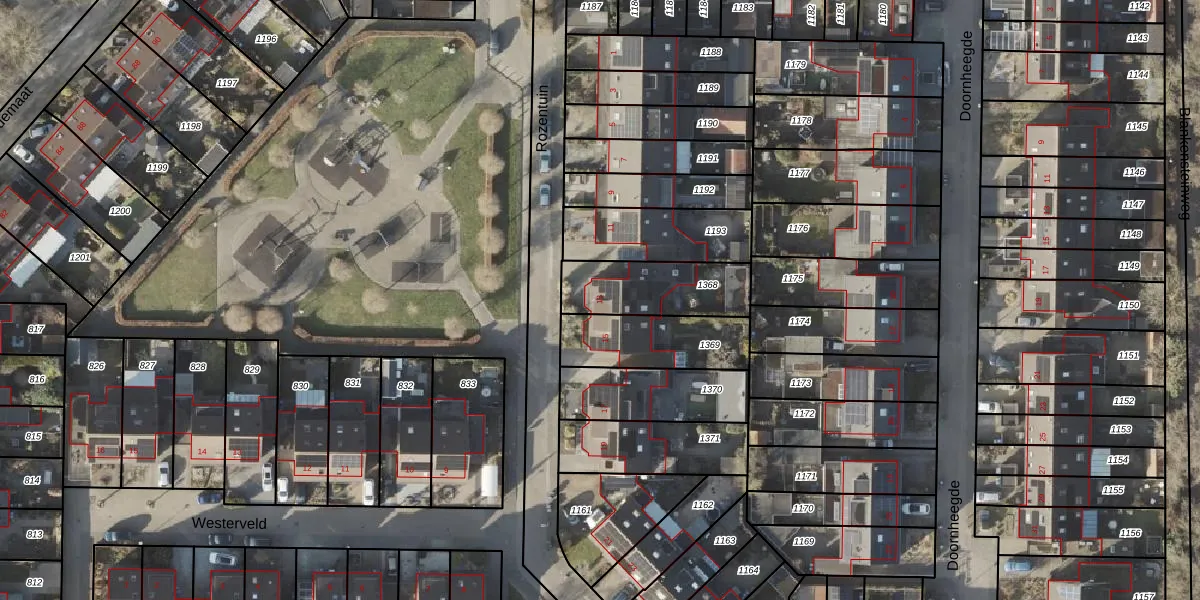 Het perceel waarop Rozentuin 13 staat heeft een oppervlakte van 283 m². Dit is een middelgroot perceel. De perceeloppervlakte wordt geregistreerd door het Kadaster. Gedetailleerde informatie over de maten van dit perceel kunt u vinden in het rapport Kadastrale kaart met maatvoering van Rozentuin 13.