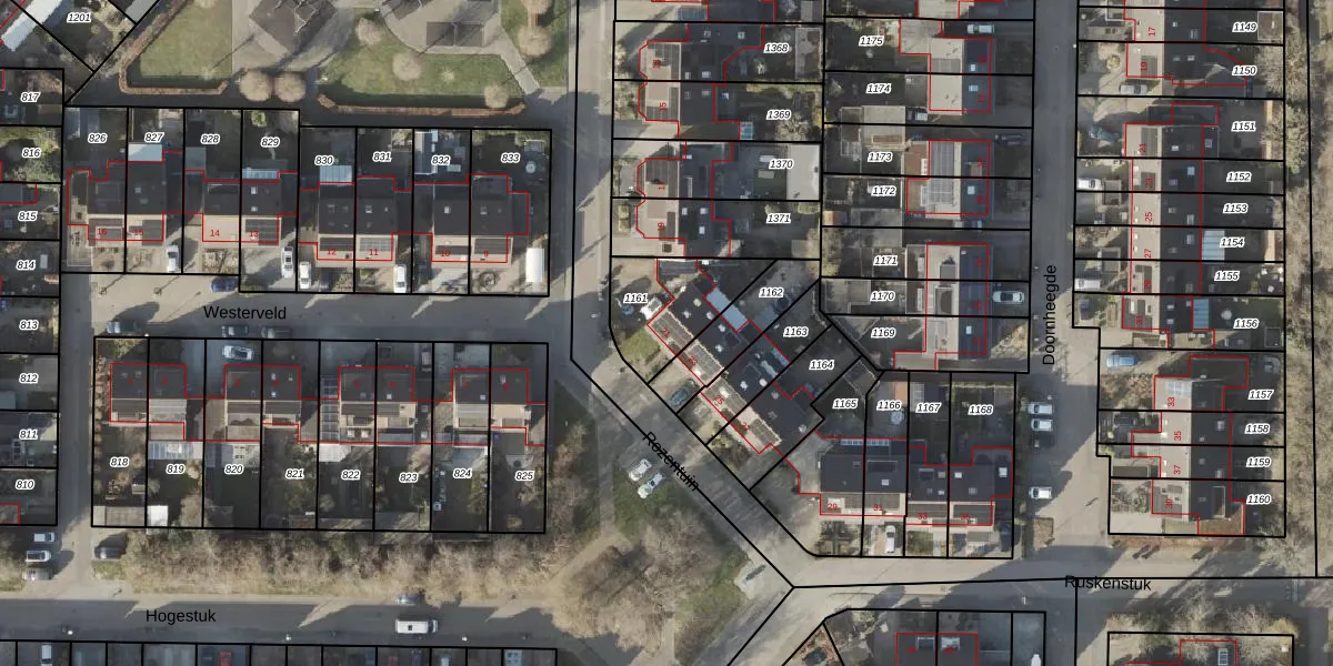 Gebruik de zoekbalk of klik op een perceel voor informatie over de adressen binnen dit perceel.