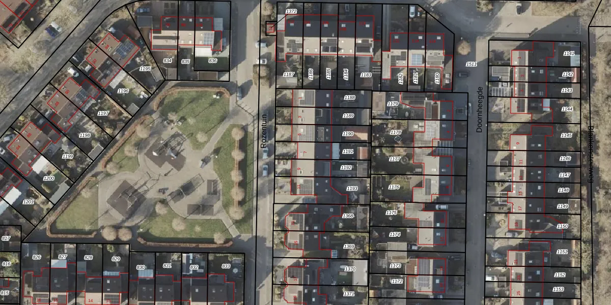Het perceel waarop Rozentuin 7 staat heeft een oppervlakte van 179 m². Dit is een middelgroot perceel. De perceeloppervlakte wordt geregistreerd door het Kadaster. Gedetailleerde informatie over de maten van dit perceel kunt u vinden in het rapport Kadastrale kaart met maatvoering van Rozentuin 7.