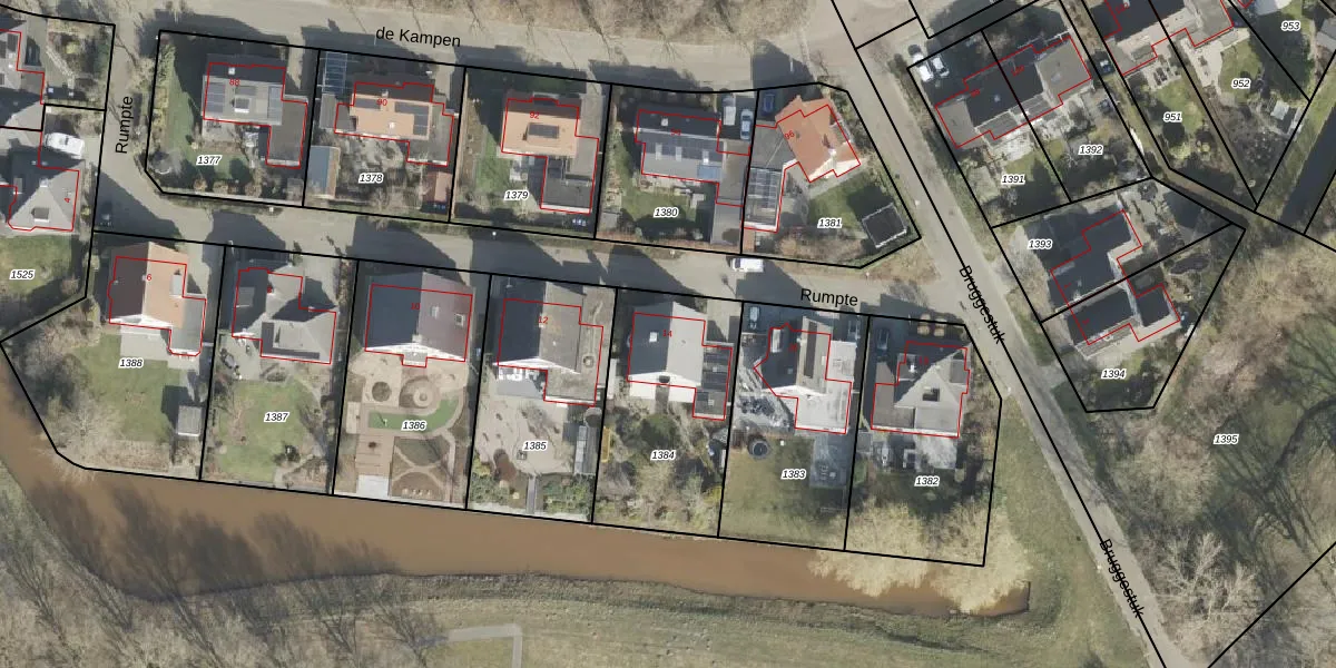 Het perceel waarop Rumpte 14 staat heeft een oppervlakte van 675 m². Dit is een groot perceel. De perceeloppervlakte wordt geregistreerd door het Kadaster. Gedetailleerde informatie over de maten van dit perceel kunt u vinden in het rapport Kadastrale kaart met maatvoering van Rumpte 14.