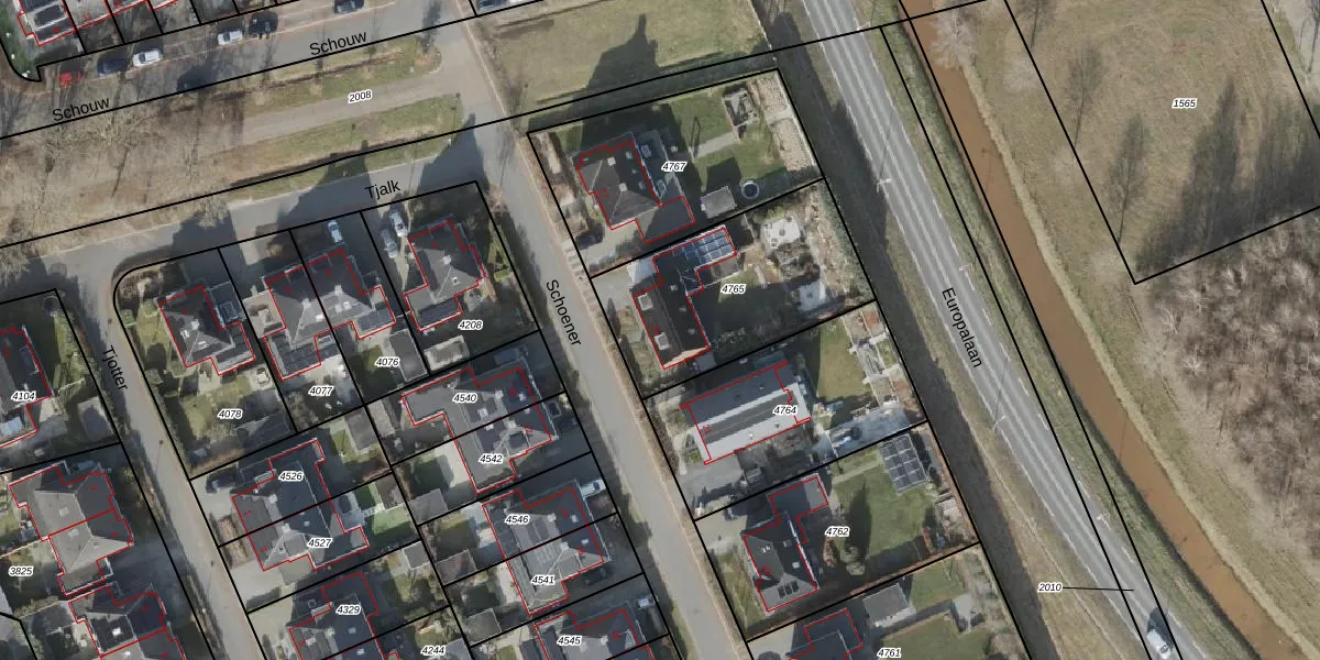 Het perceel waarop Schoener 19 staat heeft een oppervlakte van 774 m². Dit is een groot perceel. De perceeloppervlakte wordt geregistreerd door het Kadaster. Gedetailleerde informatie over de maten van dit perceel kunt u vinden in het rapport Kadastrale kaart met maatvoering van Schoener 19.