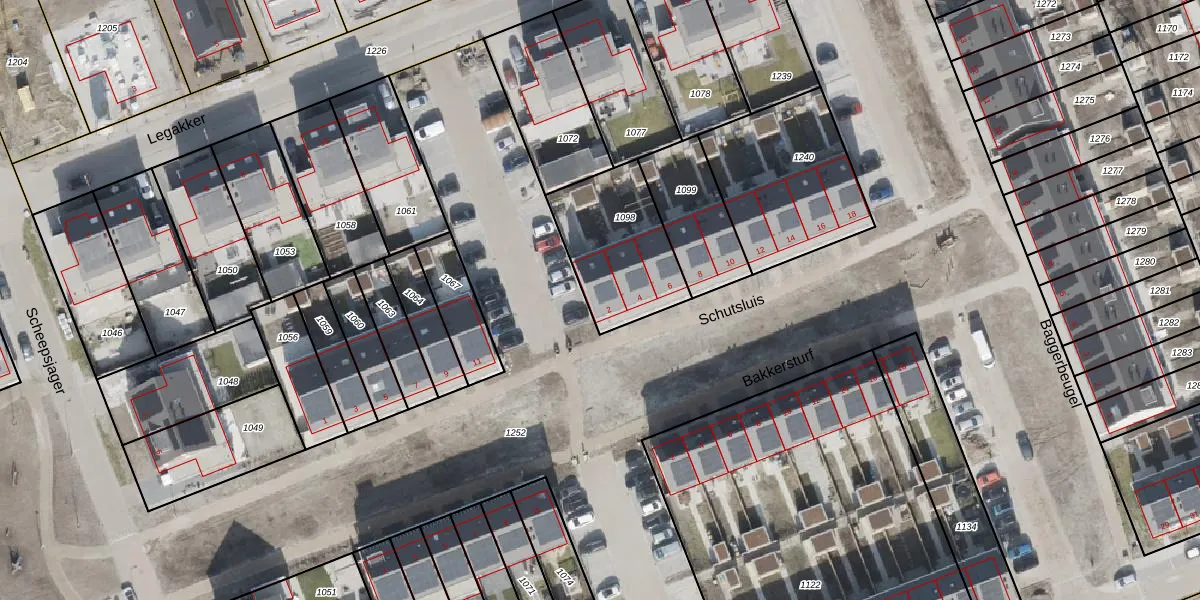 Het perceel waarop Schutsluis 2 staat heeft een oppervlakte van 413 m². Dit is een groot perceel. De perceeloppervlakte wordt geregistreerd door het Kadaster. Gedetailleerde informatie over de maten van dit perceel kunt u vinden in het rapport Kadastrale kaart met maatvoering van Schutsluis 2.