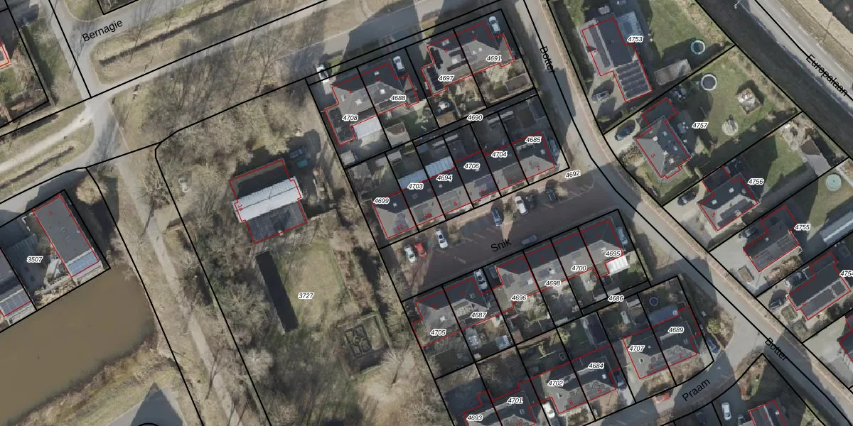Het perceel waarop Snik 10 staat heeft een oppervlakte van 143 m². Dit is een middelgroot perceel. De perceeloppervlakte wordt geregistreerd door het Kadaster. Gedetailleerde informatie over de maten van dit perceel kunt u vinden in het rapport Kadastrale kaart met maatvoering van Snik 10.