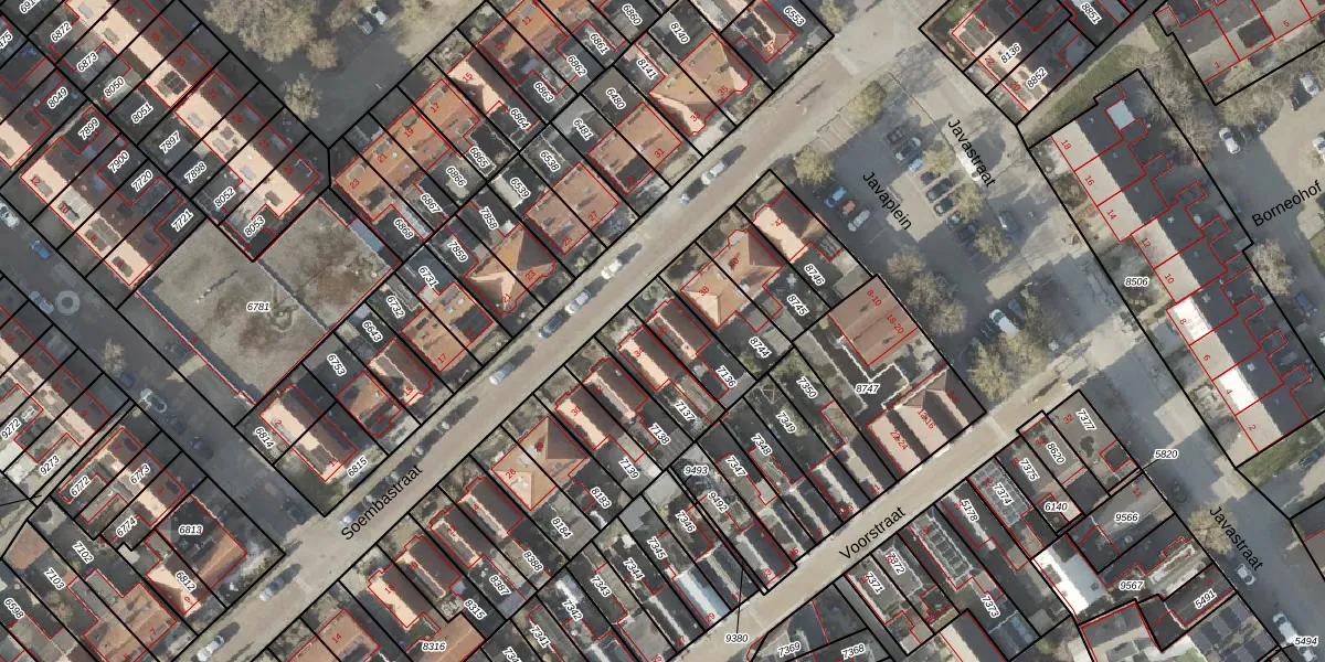 Gebruik de zoekbalk of klik op een perceel voor informatie over de adressen binnen dit perceel.