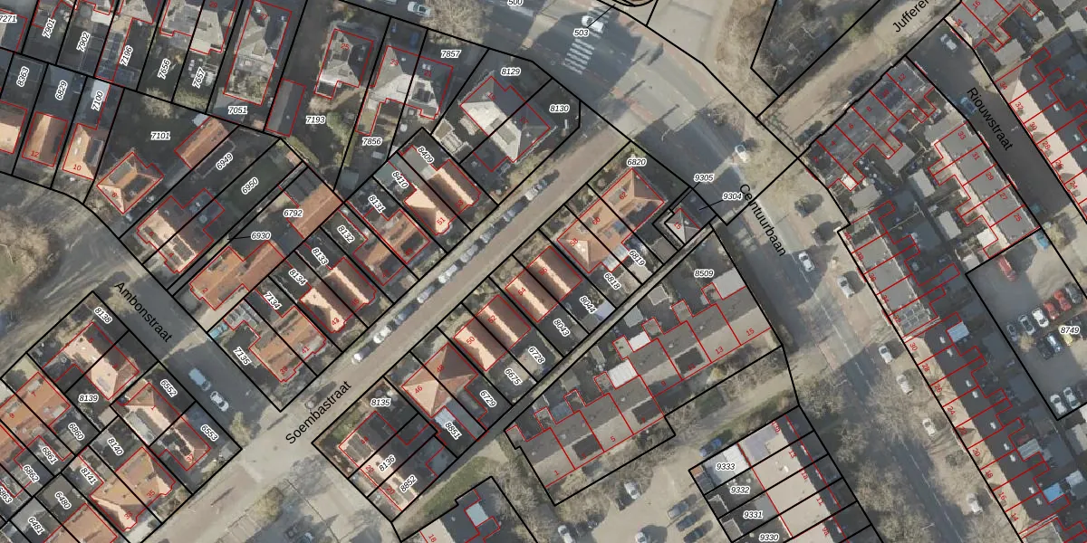 Het perceel waarop Soembastraat 56 staat heeft een oppervlakte van 136 m². Dit is een middelgroot perceel. De perceeloppervlakte wordt geregistreerd door het Kadaster. Gedetailleerde informatie over de maten van dit perceel kunt u vinden in het rapport Kadastrale kaart met maatvoering van Soembastraat 56.