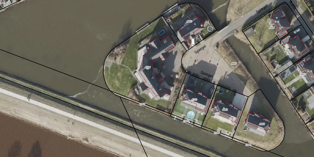Het perceel waarop Spiegel 2 staat heeft een oppervlakte van 2140 m². Dit is een zeer groot perceel. De perceeloppervlakte wordt geregistreerd door het Kadaster. Gedetailleerde informatie over de maten van dit perceel kunt u vinden in het rapport Kadastrale kaart met maatvoering van Spiegel 2.