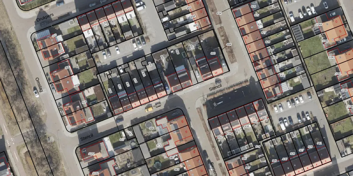 Het perceel waarop Stencil 13 staat heeft een oppervlakte van 238 m². Dit is een middelgroot perceel. De perceeloppervlakte wordt geregistreerd door het Kadaster. Gedetailleerde informatie over de maten van dit perceel kunt u vinden in het rapport Kadastrale kaart met maatvoering van Stencil 13.