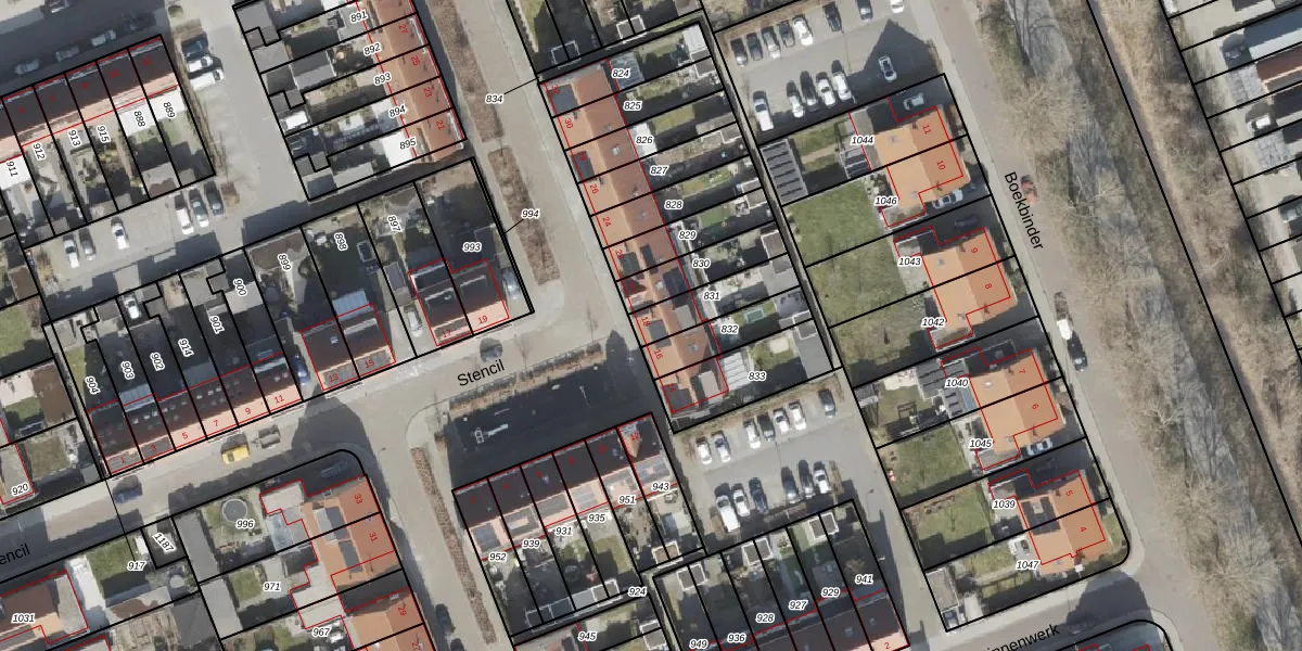 Gebruik de zoekbalk of klik op een perceel voor informatie over de adressen binnen dit perceel.