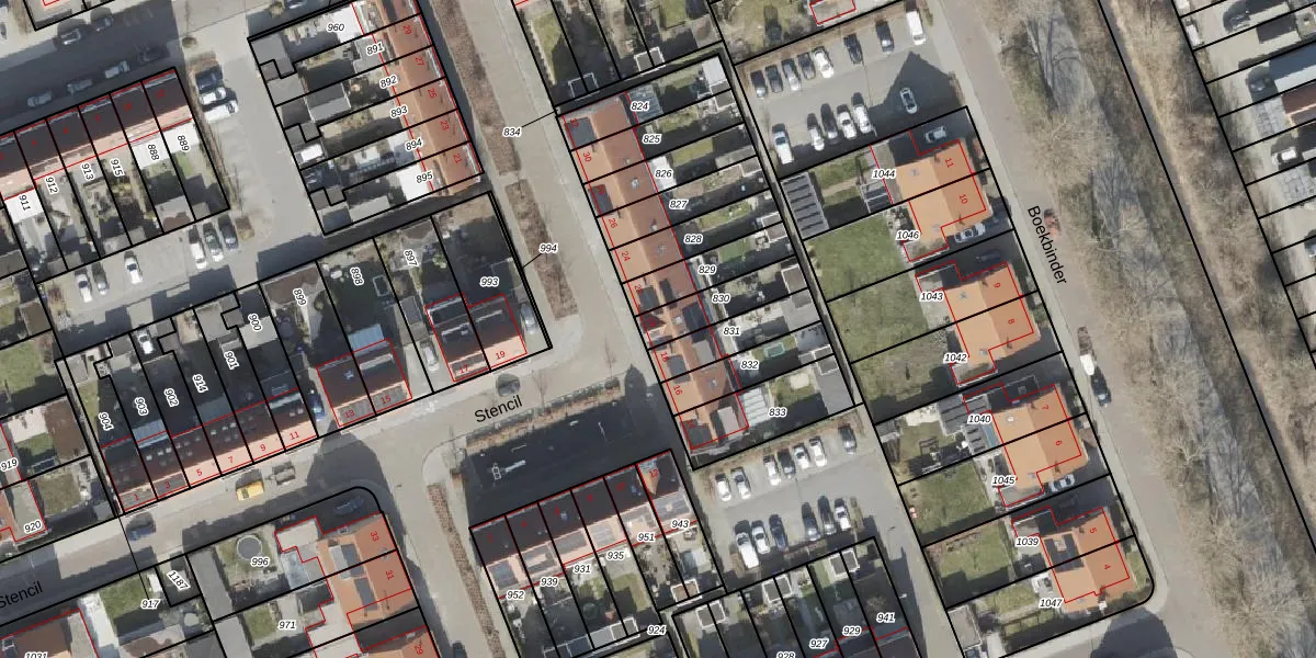 Het perceel waarop Stencil 20 staat heeft een oppervlakte van 143 m². Dit is een middelgroot perceel. De perceeloppervlakte wordt geregistreerd door het Kadaster. Gedetailleerde informatie over de maten van dit perceel kunt u vinden in het rapport Kadastrale kaart met maatvoering van Stencil 20.