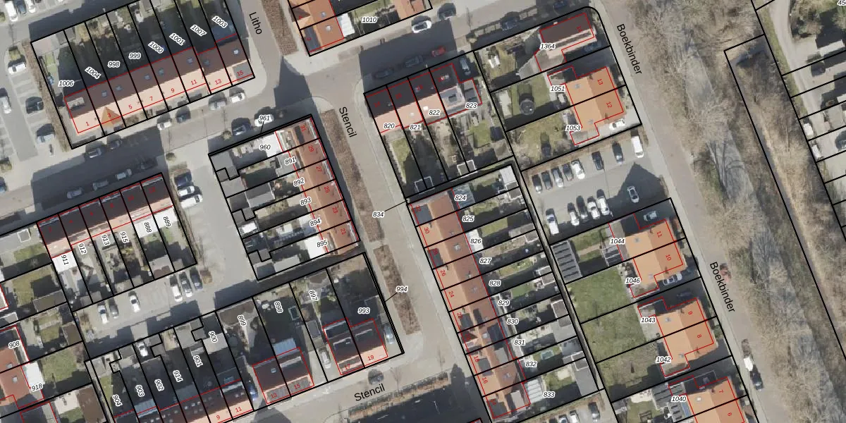 Gebruik de zoekbalk of klik op een perceel voor informatie over de adressen binnen dit perceel.