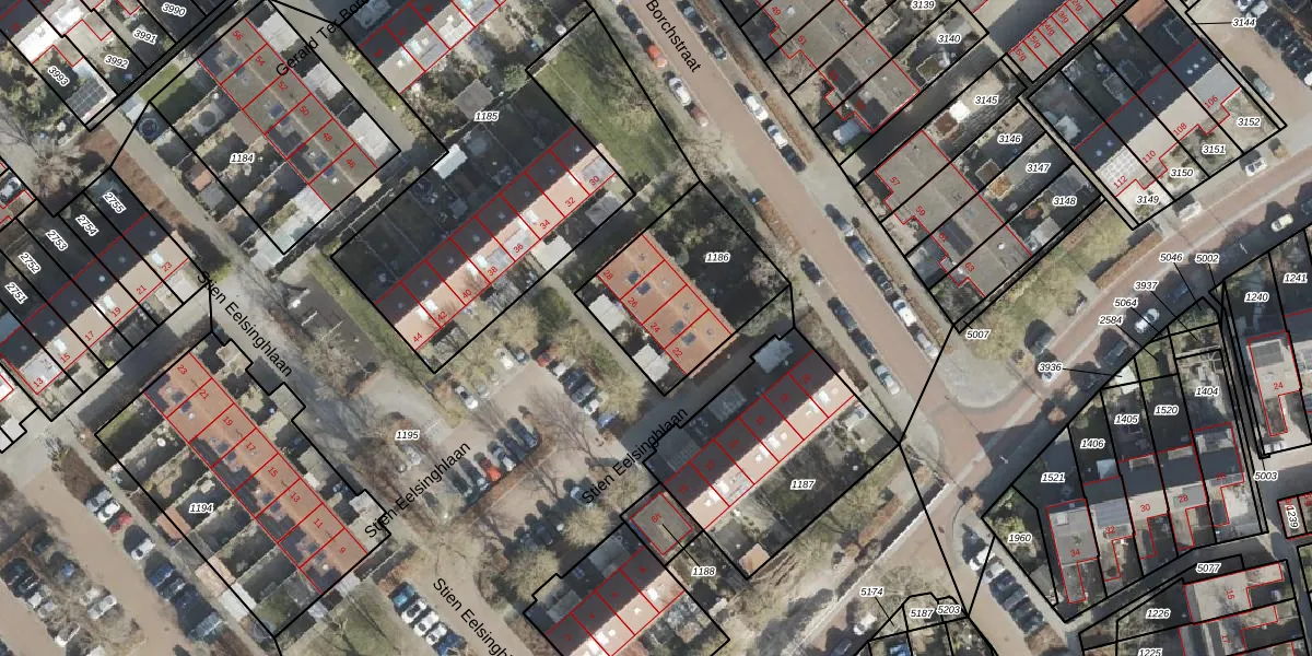 Het perceel waarop Stien Eelsinghlaan 24 staat heeft een oppervlakte van 542 m². Dit is een groot perceel. De perceeloppervlakte wordt geregistreerd door het Kadaster. Gedetailleerde informatie over de maten van dit perceel kunt u vinden in het rapport Kadastrale kaart met maatvoering van Stien Eelsinghlaan 24.