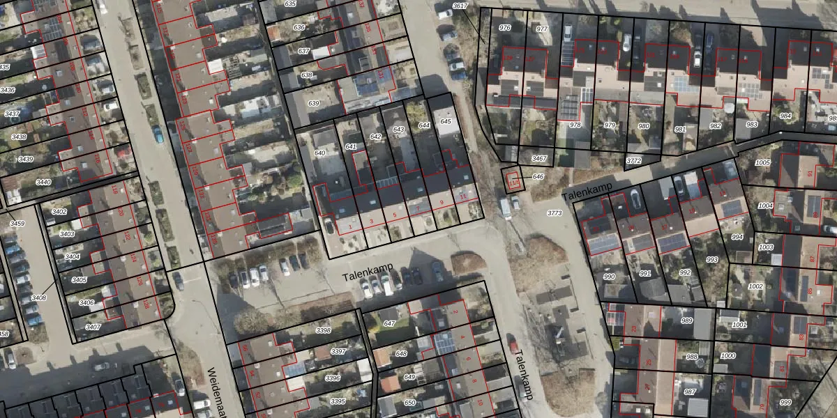 Het perceel waarop Talenkamp 7 staat heeft een oppervlakte van 184 m². Dit is een middelgroot perceel. De perceeloppervlakte wordt geregistreerd door het Kadaster. Gedetailleerde informatie over de maten van dit perceel kunt u vinden in het rapport Kadastrale kaart met maatvoering van Talenkamp 7.