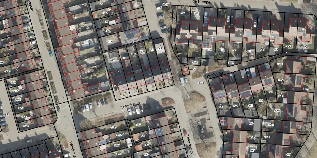 Talenkamp 9 is gelegen op kadastraal perceel MPL00M644. Deze kadastrale aanduiding is uniek en wordt gebruikt door het Kadaster om eigendomsrechten en andere zakelijke rechten vast te leggen. Het perceel maakt onderdeel uit van de kadastrale gemeente Meppel.