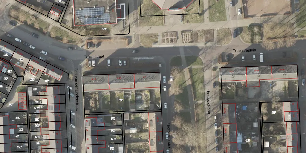 Het perceel waarop Talmastraat 2 staat heeft een oppervlakte van 1225 m². Dit is een zeer groot perceel. De perceeloppervlakte wordt geregistreerd door het Kadaster. Gedetailleerde informatie over de maten van dit perceel kunt u vinden in het rapport Kadastrale kaart met maatvoering van Talmastraat 2.