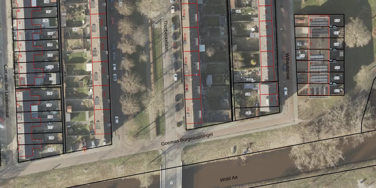 Het perceel waarop Thorbeckelaan 10 staat heeft een oppervlakte van 4025 m². Dit is een zeer groot perceel. De perceeloppervlakte wordt geregistreerd door het Kadaster. Gedetailleerde informatie over de maten van dit perceel kunt u vinden in het rapport Kadastrale kaart met maatvoering van Thorbeckelaan 10.