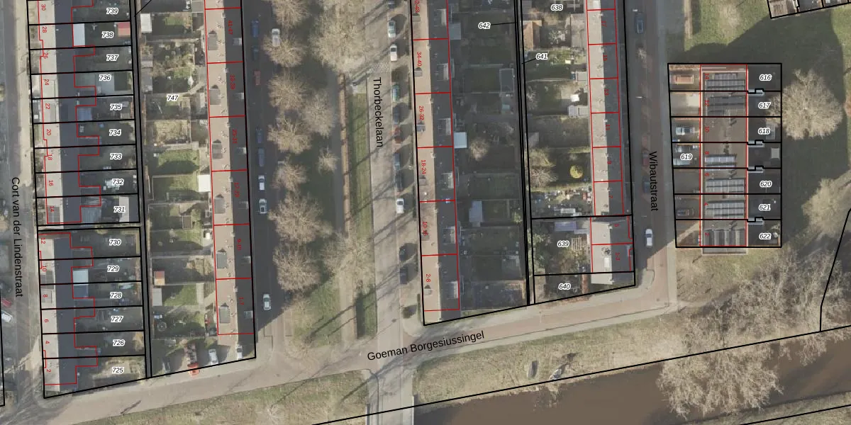 Het perceel waarop Thorbeckelaan 14 staat heeft een oppervlakte van 4025 m². Dit is een zeer groot perceel. De perceeloppervlakte wordt geregistreerd door het Kadaster. Gedetailleerde informatie over de maten van dit perceel kunt u vinden in het rapport Kadastrale kaart met maatvoering van Thorbeckelaan 14.
