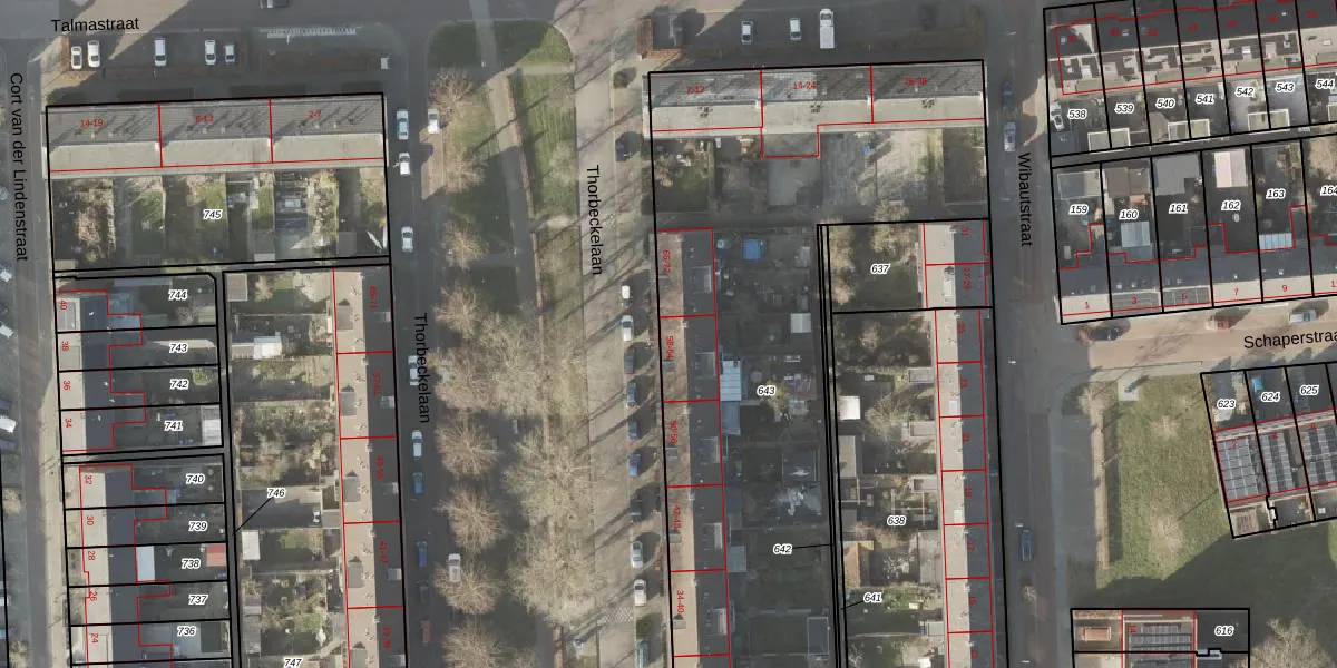 Het perceel waarop Thorbeckelaan 62 staat heeft een oppervlakte van 4025 m². Dit is een zeer groot perceel. De perceeloppervlakte wordt geregistreerd door het Kadaster. Gedetailleerde informatie over de maten van dit perceel kunt u vinden in het rapport Kadastrale kaart met maatvoering van Thorbeckelaan 62.