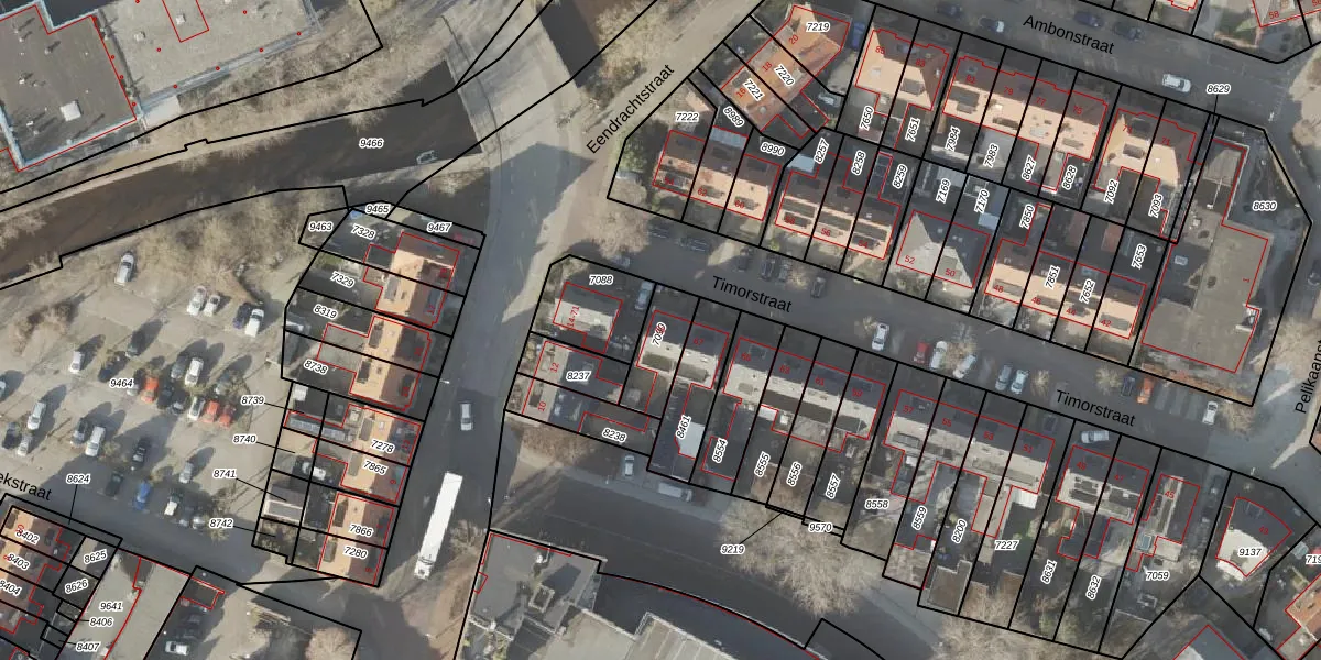 Gebruik de zoekbalk of klik op een perceel voor informatie over de adressen binnen dit perceel.