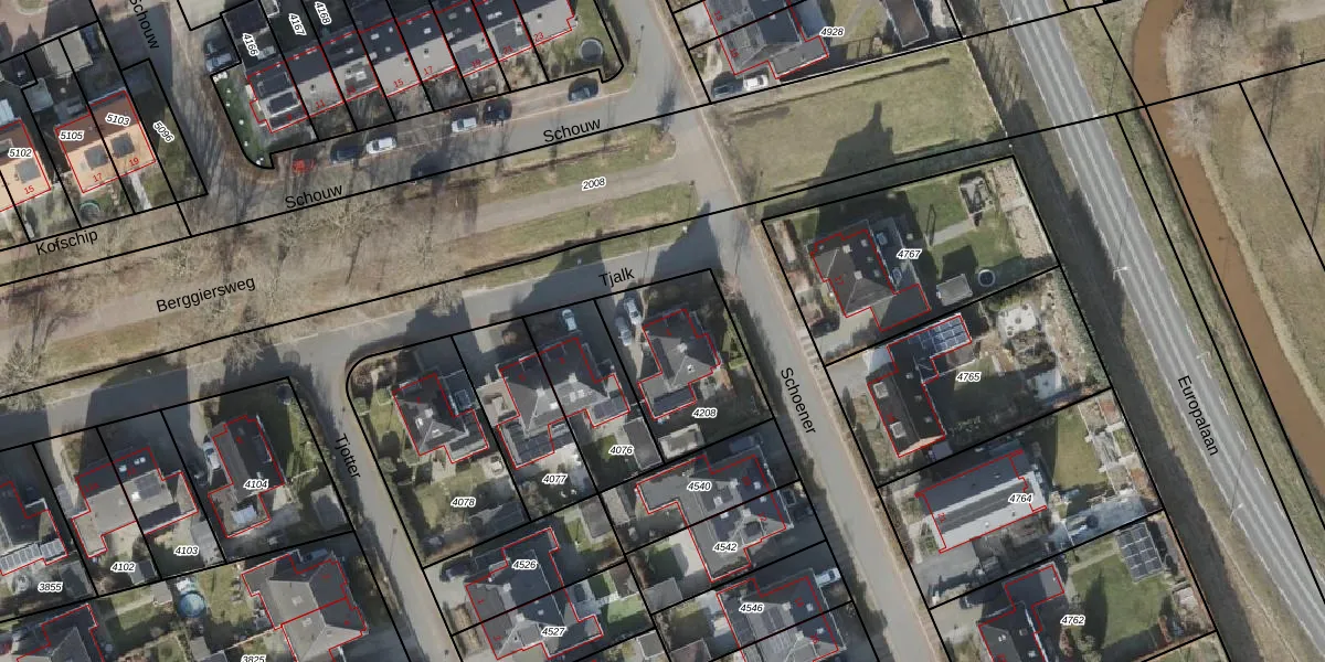 Het perceel waarop Tjalk 1 staat heeft een oppervlakte van 463 m². Dit is een groot perceel. De perceeloppervlakte wordt geregistreerd door het Kadaster. Gedetailleerde informatie over de maten van dit perceel kunt u vinden in het rapport Kadastrale kaart met maatvoering van Tjalk 1.
