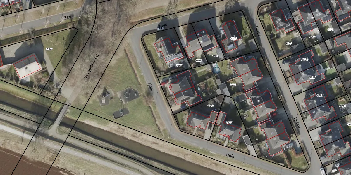 Het perceel waarop Tjalk 15 staat heeft een oppervlakte van 2424 m². Dit is een zeer groot perceel. De perceeloppervlakte wordt geregistreerd door het Kadaster. Gedetailleerde informatie over de maten van dit perceel kunt u vinden in het rapport Kadastrale kaart met maatvoering van Tjalk 15.