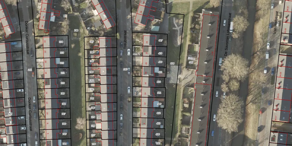 Het perceel waarop Treubstraat 18 staat heeft een oppervlakte van 164 m². Dit is een middelgroot perceel. De perceeloppervlakte wordt geregistreerd door het Kadaster. Gedetailleerde informatie over de maten van dit perceel kunt u vinden in het rapport Kadastrale kaart met maatvoering van Treubstraat 18.