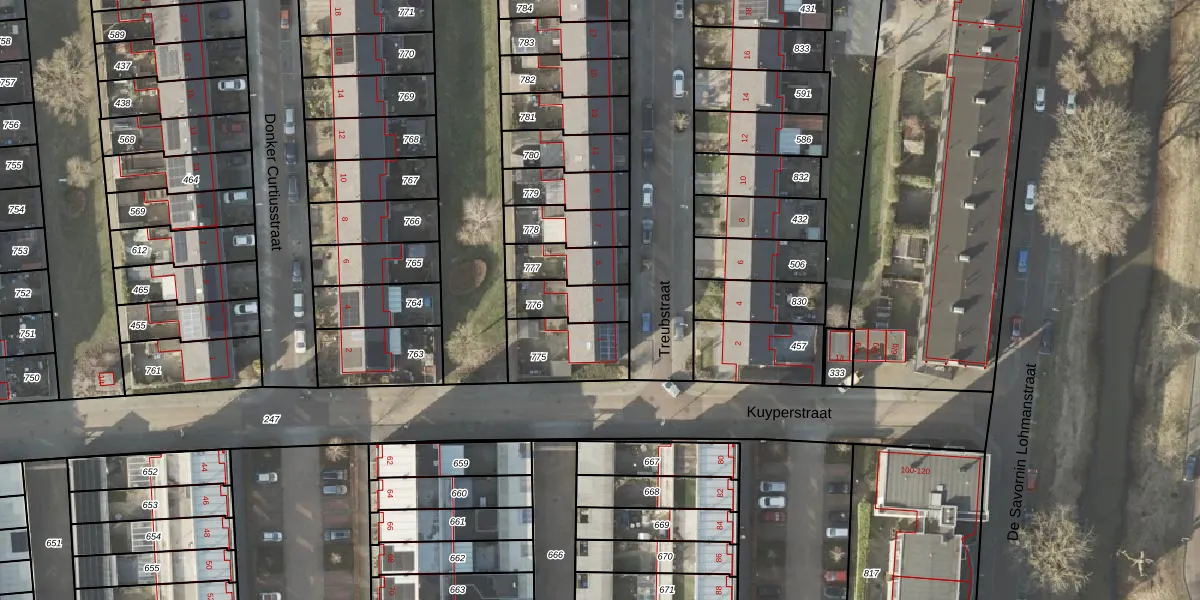 Het perceel waarop Treubstraat 3 staat heeft een oppervlakte van 126 m². Dit is een middelgroot perceel. De perceeloppervlakte wordt geregistreerd door het Kadaster. Gedetailleerde informatie over de maten van dit perceel kunt u vinden in het rapport Kadastrale kaart met maatvoering van Treubstraat 3.