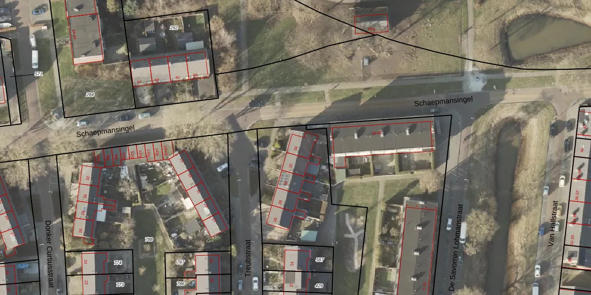 Het perceel waarop Treubstraat 34 staat heeft een oppervlakte van 1713 m². Dit is een zeer groot perceel. De perceeloppervlakte wordt geregistreerd door het Kadaster. Gedetailleerde informatie over de maten van dit perceel kunt u vinden in het rapport Kadastrale kaart met maatvoering van Treubstraat 34.