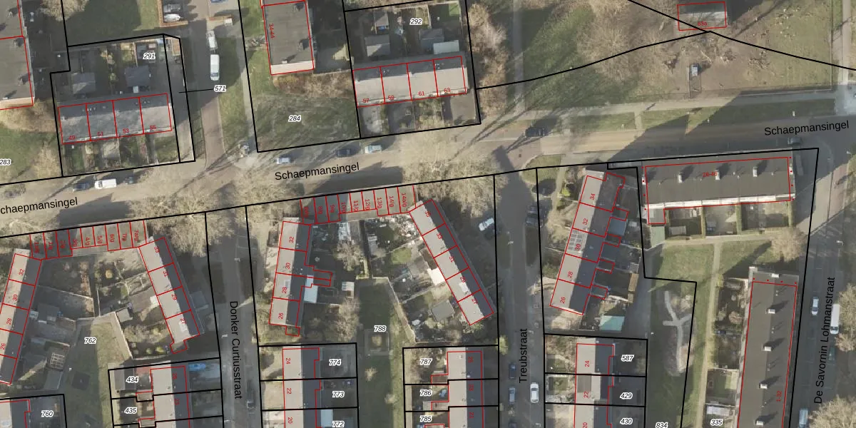 Het perceel waarop Treubstraat 35 staat heeft een oppervlakte van 2959 m². Dit is een zeer groot perceel. De perceeloppervlakte wordt geregistreerd door het Kadaster. Gedetailleerde informatie over de maten van dit perceel kunt u vinden in het rapport Kadastrale kaart met maatvoering van Treubstraat 35.