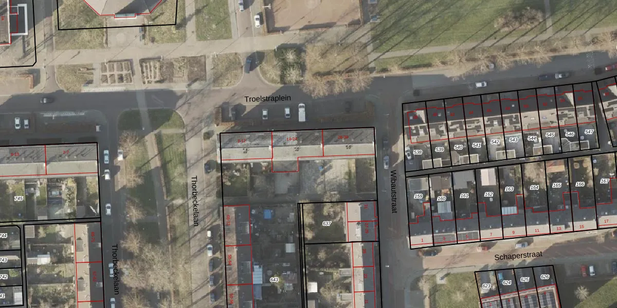 Het perceel waarop Troelstraplein 24 staat heeft een oppervlakte van 4025 m². Dit is een zeer groot perceel. De perceeloppervlakte wordt geregistreerd door het Kadaster. Gedetailleerde informatie over de maten van dit perceel kunt u vinden in het rapport Kadastrale kaart met maatvoering van Troelstraplein 24.